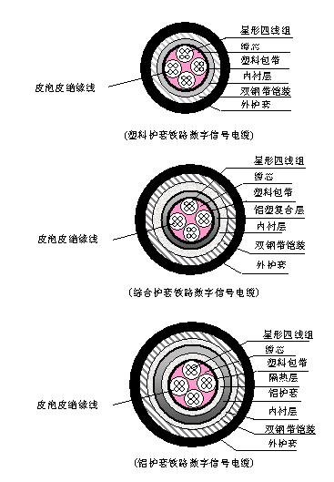 控制電路,其中綜合護套、鋁護套鐵路信號電纜具有一定的屏蔽性能,適宜于電氣化區(qū)段或其它有強